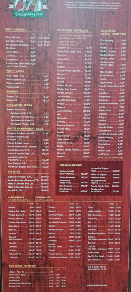 Was kosten Bier, Mischen, Longdrinks & Co. im Bierkönig auf der Playa de Palma?